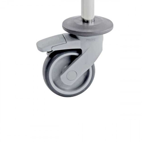 Les deux autres roues du jeu sont équipées d’un système de frein efficace, permettant de bloquer le chariot en position pour garantir sa stabilité lors des opérations nécessitant une immobilité totale. Ce freinage est essentiel dans les espaces où la sécurité est une priorité, évitant tout déplacement involontaire qui pourrait compromettre la sécurité des utilisateurs ou endommager le matériel.