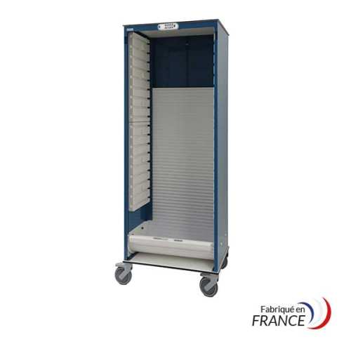 Selon le modèle, certaines armoires peuvent être équipées de roulettes pour faciliter le déplacement au sein des services, tandis que d’autres sont prévues pour une installation fixe.