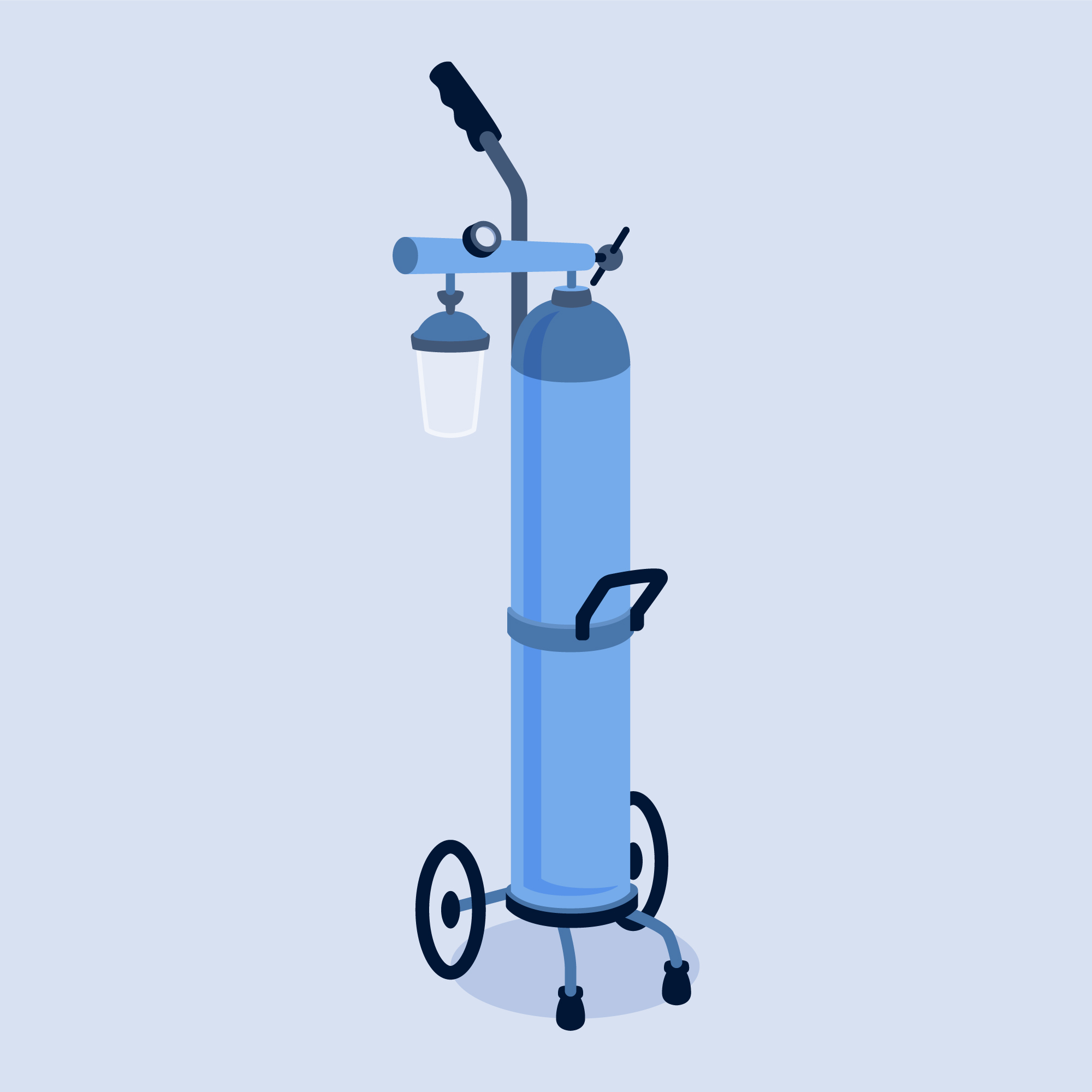 - Le support pour bouteille d’oxygène STABLE, capable de tenir debout sur sa base robuste, mais également d’être transporté à la main grâce à une poignée renforcée en acier ou accroché au bord du lit du patient.