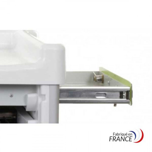 Le tiroir informatique sécurisé est l’un des principaux atouts de ce modèle. Conçu pour accueillir un ordinateur portable ou une tablette, il assure leur protection contre les chocs et la poussière tout en les gardant accessibles. Ce système transforme le chariot en un véritable poste de travail numérique mobile, idéal pour la consultation et la saisie de données en temps réel.
