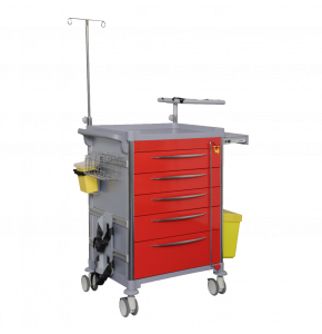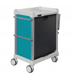 Sa finition blanche apporte une touche moderne et propre, facilitant également le nettoyage et l’entretien, indispensables dans les milieux où l’hygiène est une priorité. Ce chariot est équipé d’une tablette positionnée à droite, offrant un espace supplémentaire pratique pour poser documents, instruments ou autres accessoires fréquemment utilisés. Cette tablette latérale améliore l’ergonomie et facilite l’accès rapide aux éléments nécessaires lors des déplacements.