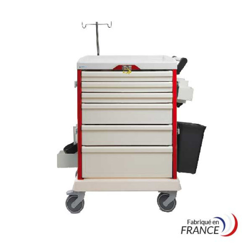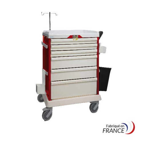 Découvrez notre chariot d'urgence configurable NOVELO à tiroirs ISO 600x400, spécialement conçu pour répondre aux exigences des situations critiques dans les environnements de soins. Doté d'une structure en aluminium à la fois légère et robuste, il peut être équipé de nombreux accessoires modulables, garantissant le respect des protocoles en vigueur au sein des établissements de santé.