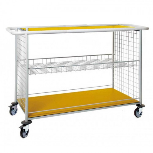 Chariot de change 1100 JAUNE nu - avec étag. sans sép. - dim. plateau sup.1100x520x1020 mm