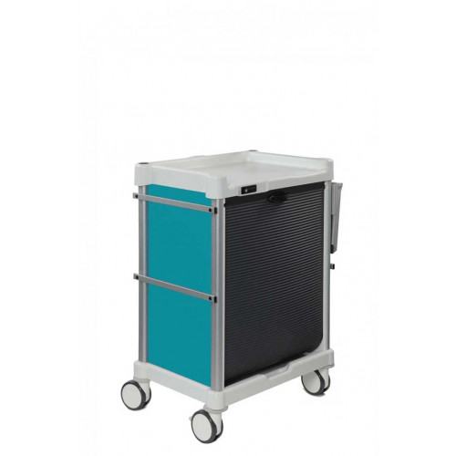 Le chariot dispose d’une poignée ergonomique qui facilite le guidage et réduit les tensions musculaires lors des déplacements fréquents. Il repose sur quatre roulettes, dont deux antistatiques et deux avec frein, assurant manœuvrabilité, stabilité et sécurité dans les couloirs étroits ou les zones encombrées.