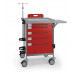 Le chariot est équipé de cinq tiroirs de différentes tailles avec support pour paniers aux dimensions ISO standard 600 x 400 mm, ce qui permet une grande flexibilité dans le rangement des matériels médicaux et accessoires. La configuration des tiroirs est la suivante :