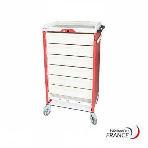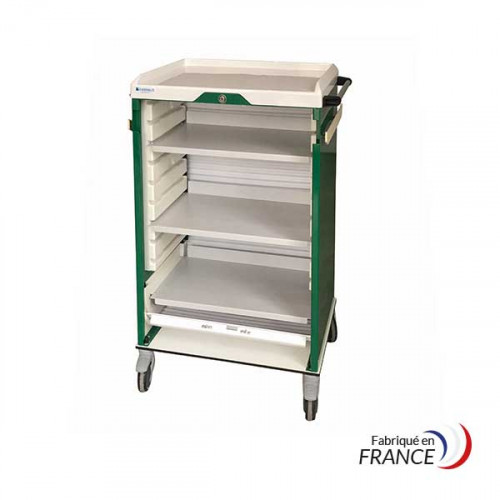 Fabriquée en France, la gamme de chariots médicaux NOVELO à rideau a été conçue avec le plus grand soin pour répondre aux besoins de distribution et de sécurisation du médicament en milieu médical. Sachant que chaque service médical est différent, nous avons élaboré cette gamme sous le signe de la modularité et de la personnalisation. Chaque modèle peut être équipé d'accessoires pour une réponse précise aux besoins et enjeux du service.