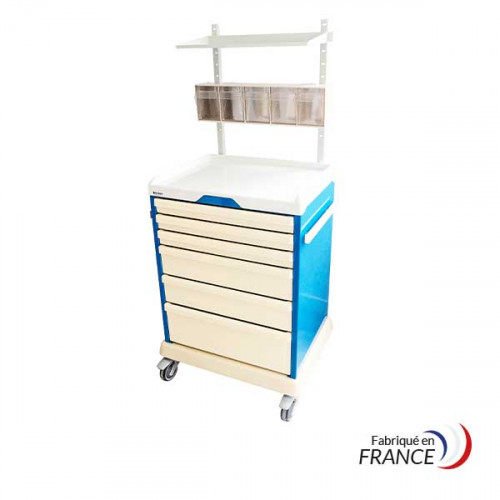 Chariot médical NOVELO 12 sans fermeture avec socle en HPL et 2 rails - COLORIS A DEFINIR |