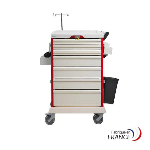 Par ailleurs, une large gamme de tiroirs et d’accessoires complémentaires est disponible en option, permettant une personnalisation complète du chariot en fonction des besoins spécifiques des services d’urgence ou des protocoles médicaux en vigueur.