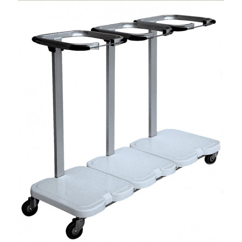 Conçu pour accueillir trois sacs alignés, ce chariot facilite la collecte et le tri dans un format optimisé pour espaces étroits.