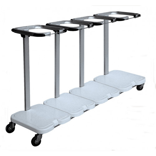 Ce chariot est conçu pour accueillir quatre sacs alignés, idéal pour la collecte et le tri efficace du linge ou déchets en espace restreint.