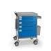 - Roues doubles Ø100 mm pour chariot multifonction ou roues simples Ø125 mm pour chariot de soins et d'urgence, dont 2 à frein et 2 antistatiques.