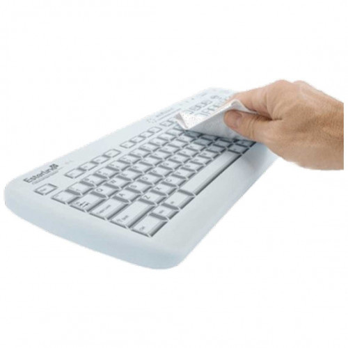 Doté d’un design plat et sans aspérités, le clavier Medigenic est entièrement recouvert d’une surface en silicone hypoallergénique, sans latex, ce qui facilite considérablement son nettoyage. Sa conformité à la norme IP65 garantit une protection efficace contre la poussière et les projections d’eau. Il peut être nettoyé à l’aide de solutions antibactériennes couramment utilisées dans le secteur médical, voire rincé directement sous l’eau, sans risque d’endommagement.