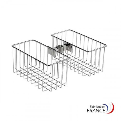 Ce double panier en fil d'inox est adaptable sur les pieds à perfusion ayant un fourreau de Ø30 mm.