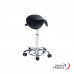 This surgeon's stool features an ergonomic and tiltable polyurethane seat, adjustable in height thanks to a chrome gas lift.