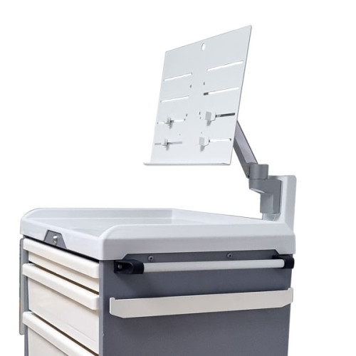 The articulated arm support for a 17" laptop or touch tablet is a practical and safe product that meets the needs of computerised medication circuits and computerised patient records in healthcare establishments. This laptop or tablet holder with its articulated arm is compatible with Farmalis by Mdose medical trolleys.