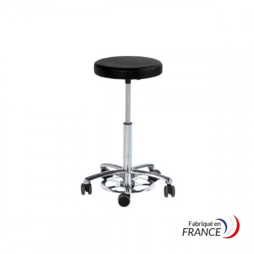 Black stool with foot control, seat Ø360 mm - H 530 / 720 mm