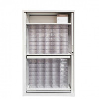 Designed for storing medications, solutions, and medical devices, this double mobile interior transfer medical cabinet with key lock, manufactured in France, is perfectly suited to the daily needs of healthcare facility services. Its interior compliant with ISO 600×400 standard ensures that all available ISO accessories can be used.