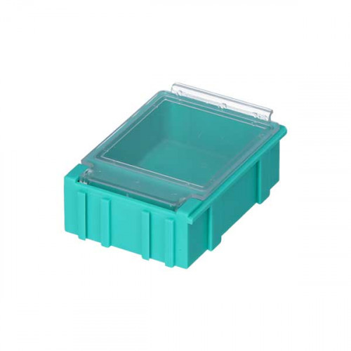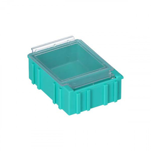 With its transparent lid made of SAN, the NB3 CT GREEN clamshell box offers complete visibility of its contents. Whether for medications or technical components, you can quickly identify what you need without having to open it. Combinable on all four sides, it easily transforms into a daily pill organizer suitable for dispensing tablets.