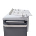 - Tray with adjustable hooks to securely hold laptop and tablet
