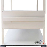 The lower left universal rail for the Farmalis by Mdose healthcare trolley can accommodate a variety of accessories such as a large storage bin, waste bin and other accessories. Attached to the trolley, this rail gives care staff quick access to the items they need to provide care.