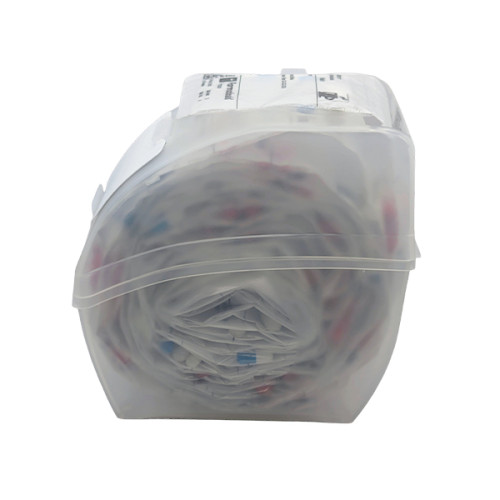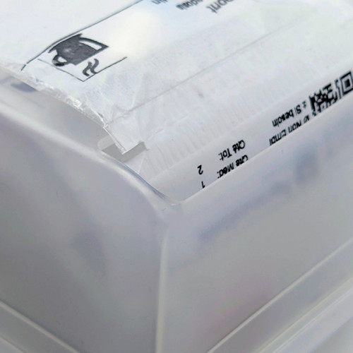 The Mdose dispenser box is a practical and hygienic solution for a spiral-style dispensing system. The top tab holds the sachet in place and makes it easy to remove individual sachets during dispensing. It features a dedicated slot for inserting our label holder (sold separately), holding it securely in place and thus ensuring patient identification.