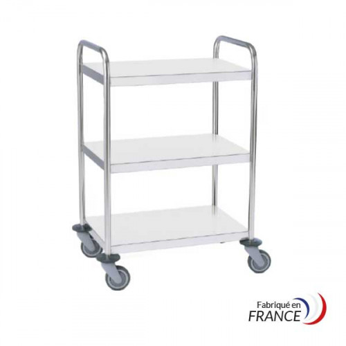 Available in versions with 2 or 3 shelves, the Mdose stainless steel trolley with push handles is an essential item for medical services, whether in an operating room, pharmacy premises, or nursing home corridors.