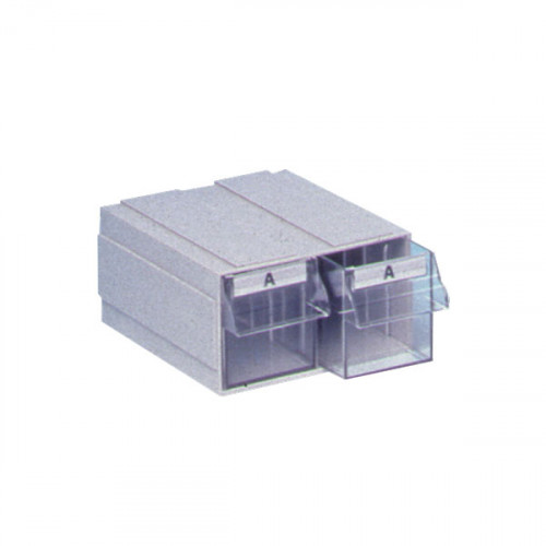 The Multiroir TBS is a gray polystyrene drawer block with two very sturdy transparent drawers. The drawers are compartmentalizable, allowing for the organization and storage of medical equipment and consumables. Each drawer block can be combined on all sides, enabling the creation of a customized storage space.