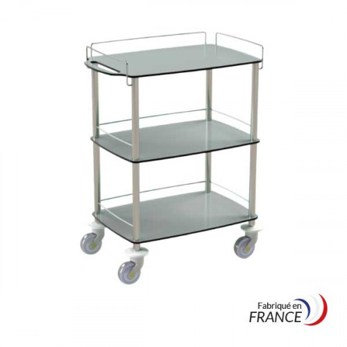 The 3-tier trolley with composite resin shelves and a structure made of 18/10 stainless steel tubes with a 30 mm diameter is designed to meet the daily needs of healthcare professionals. Its construction offers excellent resistance to impacts and chemicals, thus facilitating its cleaning and maintenance.