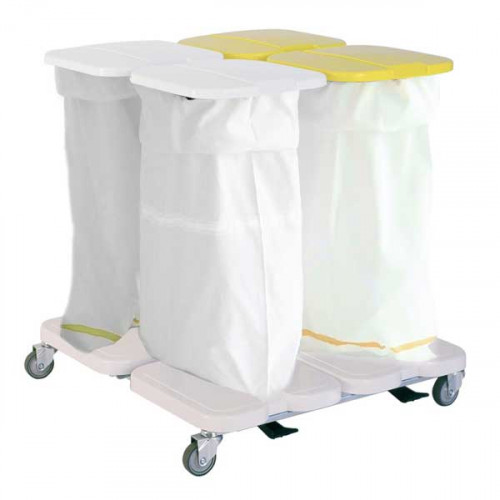 This square dirty laundry cart accommodates 4 bags of dirty laundry. It comes equipped with 4 lids (2 yellow and 2 white), each with its own pedal for individual opening. This square bag-carrying cart is perfectly suited for the laundry management needs of healthcare facilities.