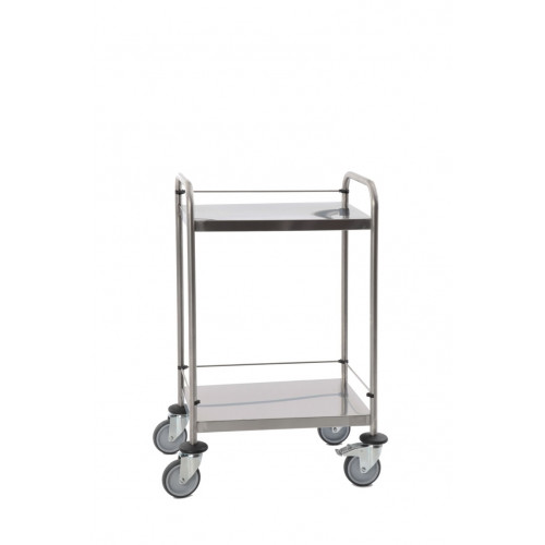 Welded stainless steel trolley with 2 shelves 600 x 400 mm and rails