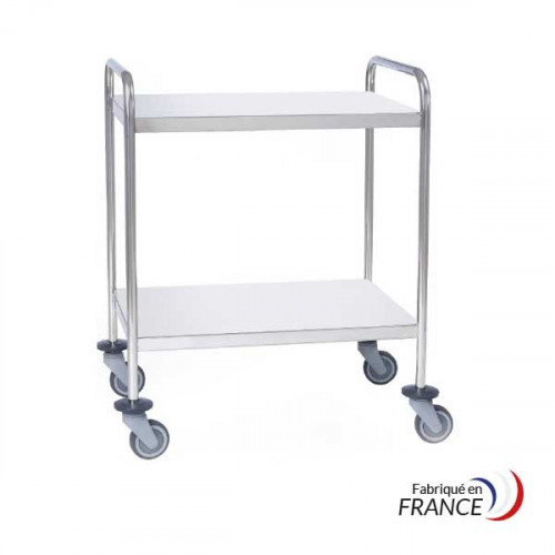 Guéridon inox 2 plateaux 75x50 avec poignées, sans galeries et sans frein