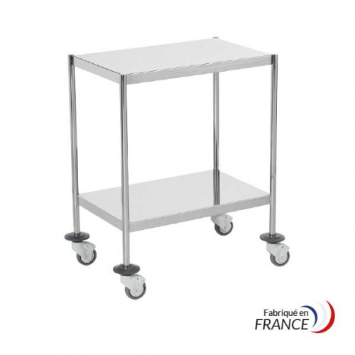 Guéridon inox 2 plateaux 75x50 - sans poignées, galeries et frein