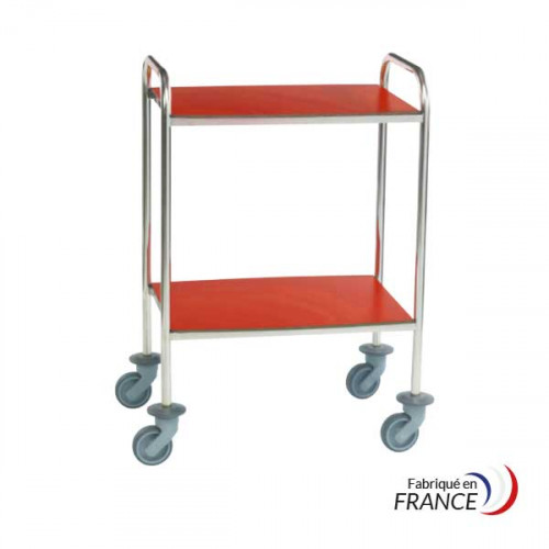 Le guéridon est équipé de deux plateaux en résine composite colorée, une matière alliant résistance et légèreté. La résine composite est lisse, non poreuse, et se nettoie facilement, ce qui en fait un choix judicieux pour les services de soins, les blocs opératoires, ou les espaces de préparation pharmaceutique.
