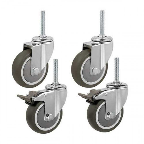 Ce lot de roulettes est spécialement adapté aux guéridons de la gamme Mdose, mais peut aussi convenir à d'autres modèles compatibles présentant les mêmes dimensions d’axes et de fixations. L’installation est simple et rapide : les roulettes s’emboîtent ou se vissent directement dans les supports prévus à cet effet. Chaque roulette peut être montée avec ou sans frein, selon le besoin du poste de travail.