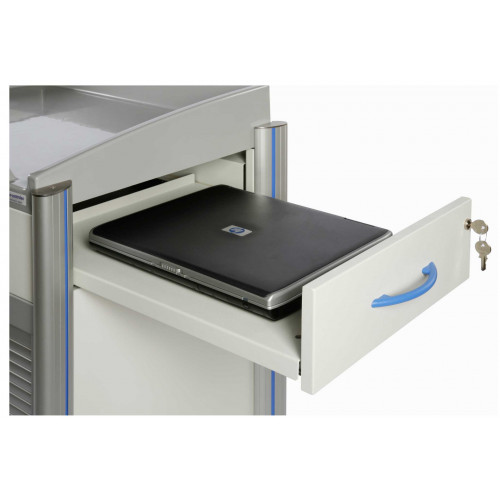 Le chariot médical de NOVELO INFORMATIQUE constitue une solution complète pour l'organisation et le transport en toute sécurité de l'équipement informatique, des consommables et médicaments nécessaire aux équipes soignantes, que ce soit entre les différents services ou les patients. Entièrement modulable et personnalisable, il peut être ajusté selon les besoins spécifiques de chaque service, offrant ainsi une flexibilité optimale.
