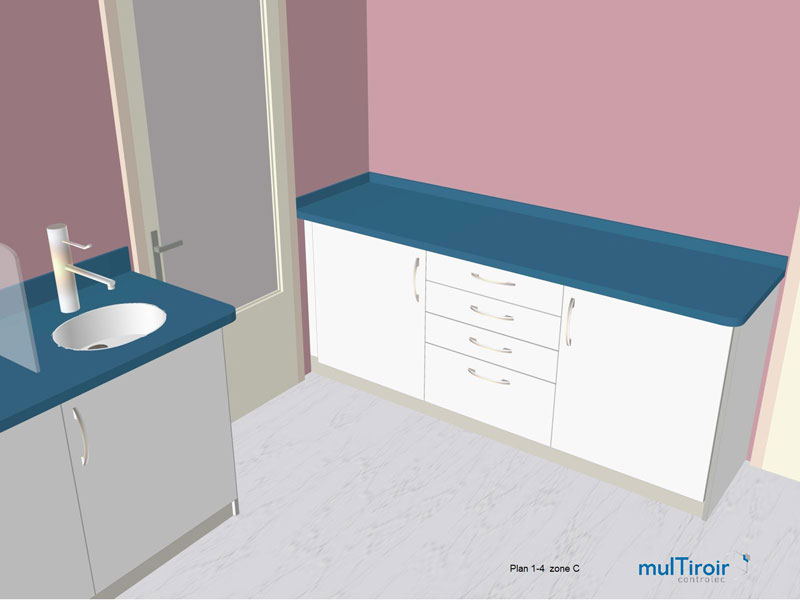Grâce à un logiciel tridimensionnel pointu, Multiroir vous offre la possibilité de visualiser avec beaucoup de réalisme l’agencement de votre salle de soins. Cet outil permet également de concevoir un projet à l’aide des plans que vous nous aurez fournis pour vous proposer une prestation professionnelle, tenant compte notamment des flux de matériels et de personnes.