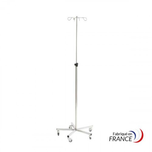 Pied à perfusion inox alourdi - 4 crochets sécurisés