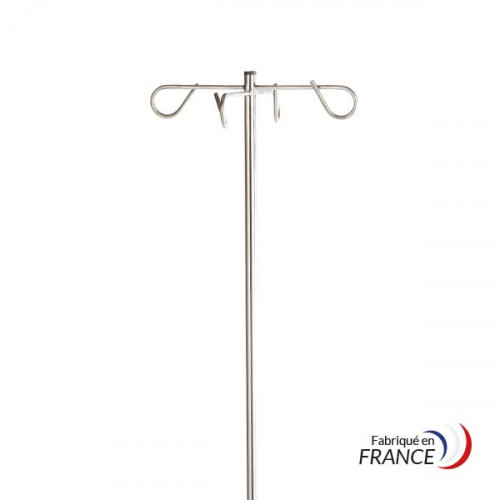 Ce modèle est doté d’un fourreau en inox de Ø30 mm, assurant solidité et durabilité. Les 4 crochets sécurisés permettent de suspendre les poches de perfusion de manière stable et sécurisée, réduisant les risques de chute ou de déséquilibre. Les roues de Ø50 mm offrent une mobilité fluide et silencieuse, facilitant le déplacement entre les zones de soins.