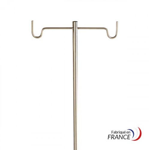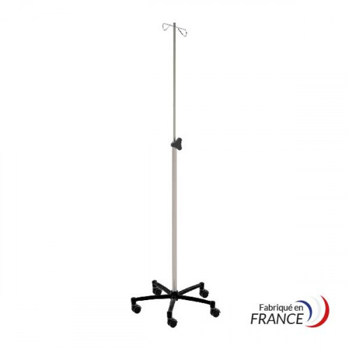 Ce pied à perfusion est équipé d'une base étoilée alourdie en polyamide de 56 mm de diamètre, montée sur 5 roulettes de 50 mm de diamètre. La tige en inox 18/10 (AISI 304) est robuste et facile à nettoyer. Ce modèle, doté de 2 crochets en U, répond aux exigences des services de soins.