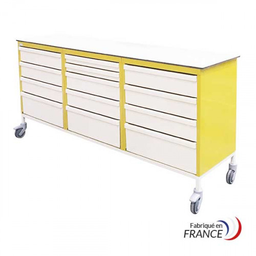 Plan de travail mobile en HPL avec 3 caissons - 27 glissières