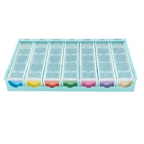 Plateau de distribution hebdomadaire de médicaments avec étiquettes 7 jours - 320x200x40 mm