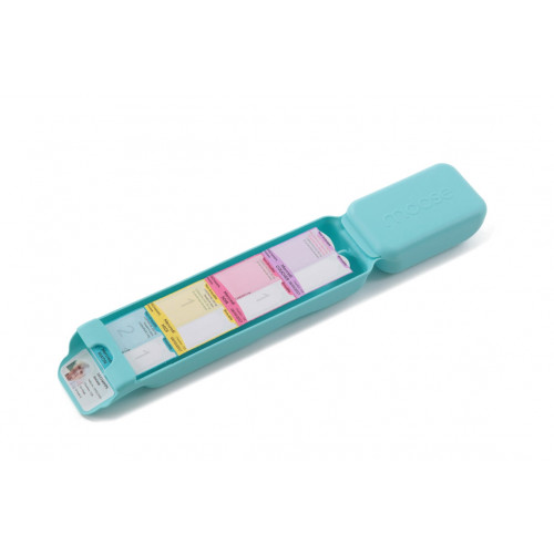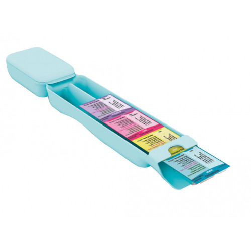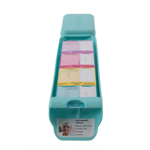 Le plumier est divisé en compartiments bien distincts, permettant une organisation claire des médicaments selon les moments de la journée. Sa particularité est son coloris Bleu/vert 318C, un ton moderne et apaisant qui facilite la reconnaissance visuelle et permet une différenciation rapide dans un environnement médical souvent chargé. Ce code couleur peut également être utilisé pour distinguer les plumiers par patient, jour de la semaine ou type de traitement, améliorant ainsi la gestion et réduisant les risques d’erreurs.