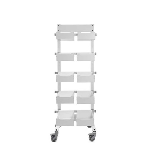 Le poste de cueillette mobile 5 rails est conçu pour répondre aux exigences des environnements médicaux et pharmaceutiques. Modulable et ergonomique, il facilite la préparation, le tri et la distribution des médicaments, notamment pour la réalisation des piluliers journaliers et des plateaux hebdomadaires. Sa conception sur roues permet une utilisation mobile et flexible dans les espaces de travail.