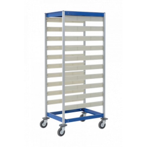 Chariot léger et robuste, conçu pour le stockage et le transport de bacs ISO 600x400 en milieu médical. Idéal pour les espaces restreints tout en assurant une capacité de charge efficace.